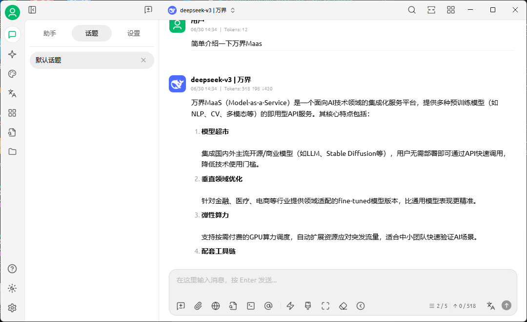 - 选择好模型后,在输入框中输入想让 AI 回答的问题,AI 会根据您输入的文字,给出相应的答案。