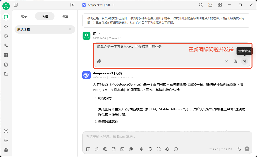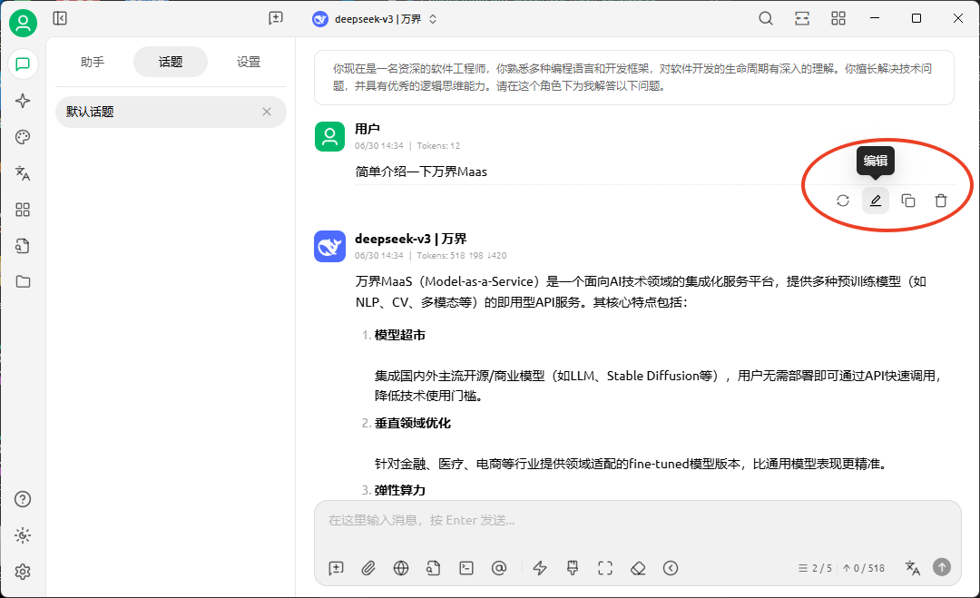 - 如果回答效果不满意,还可以点击编辑 按钮,对 AI 的回答进行重新生成。
