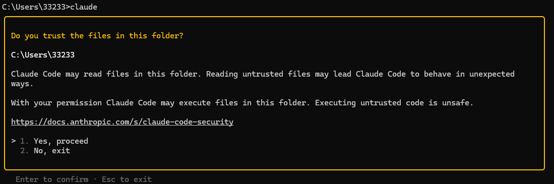 claude选择 1. Yes,proceed 打开 Claude code