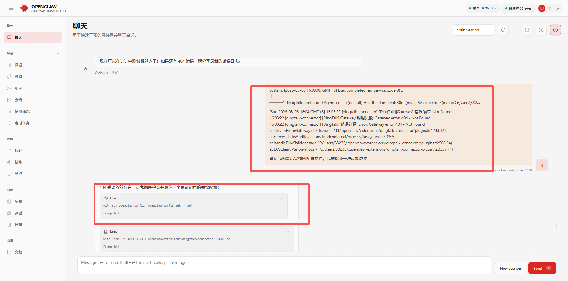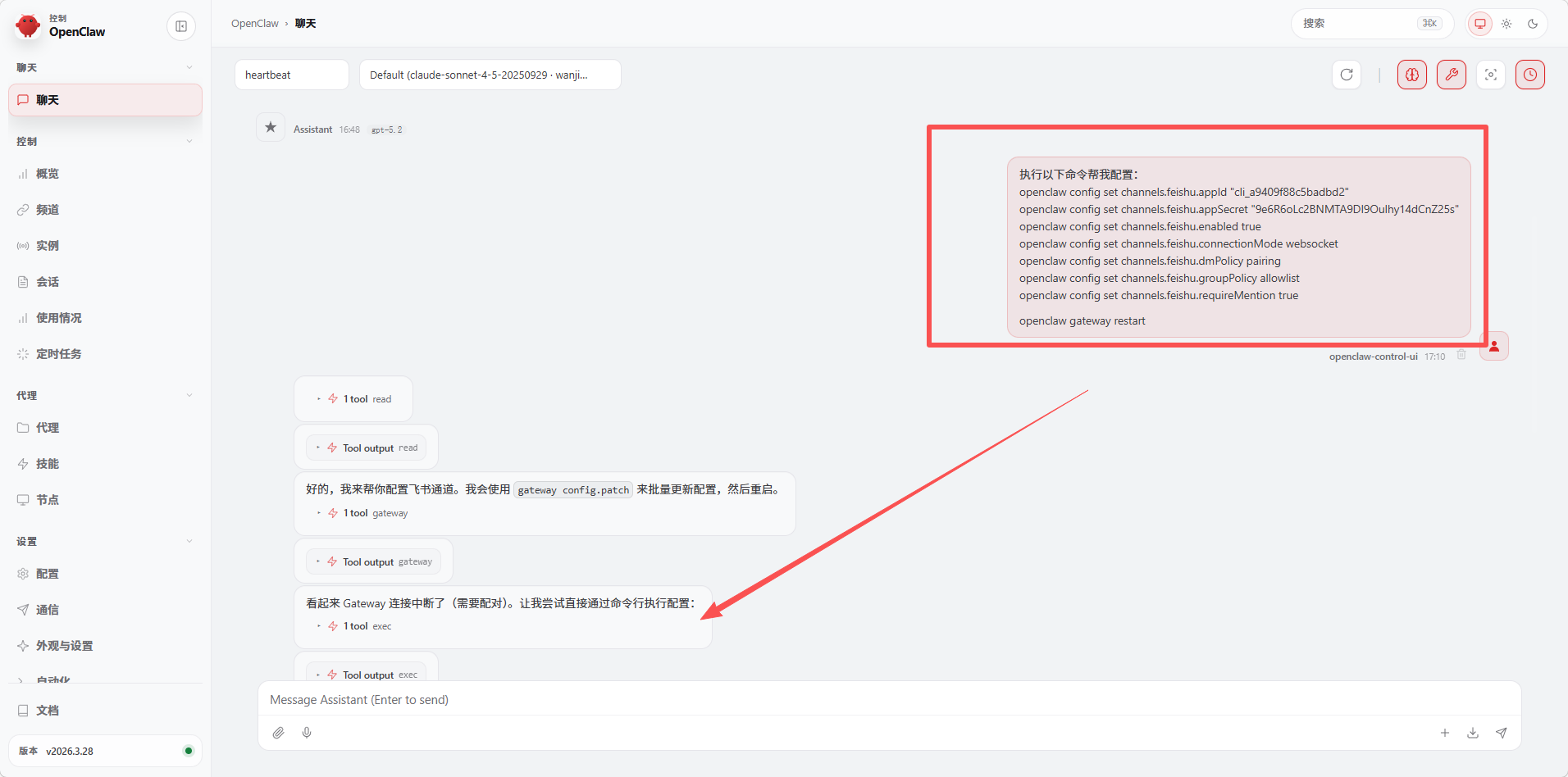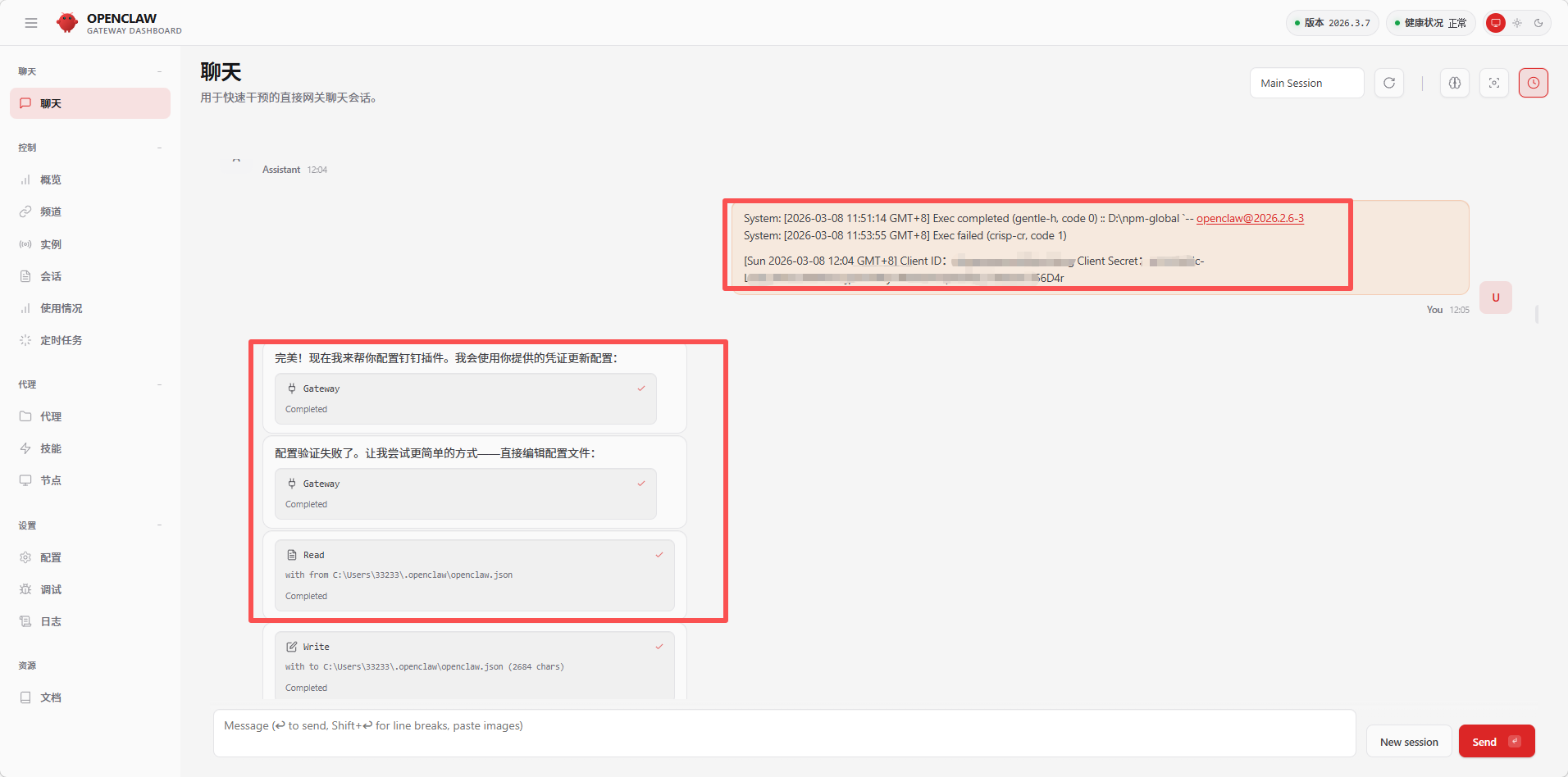 配置完成后如果遇到问题导致无法正常运行,也可以让 OpenClaw 进行修订