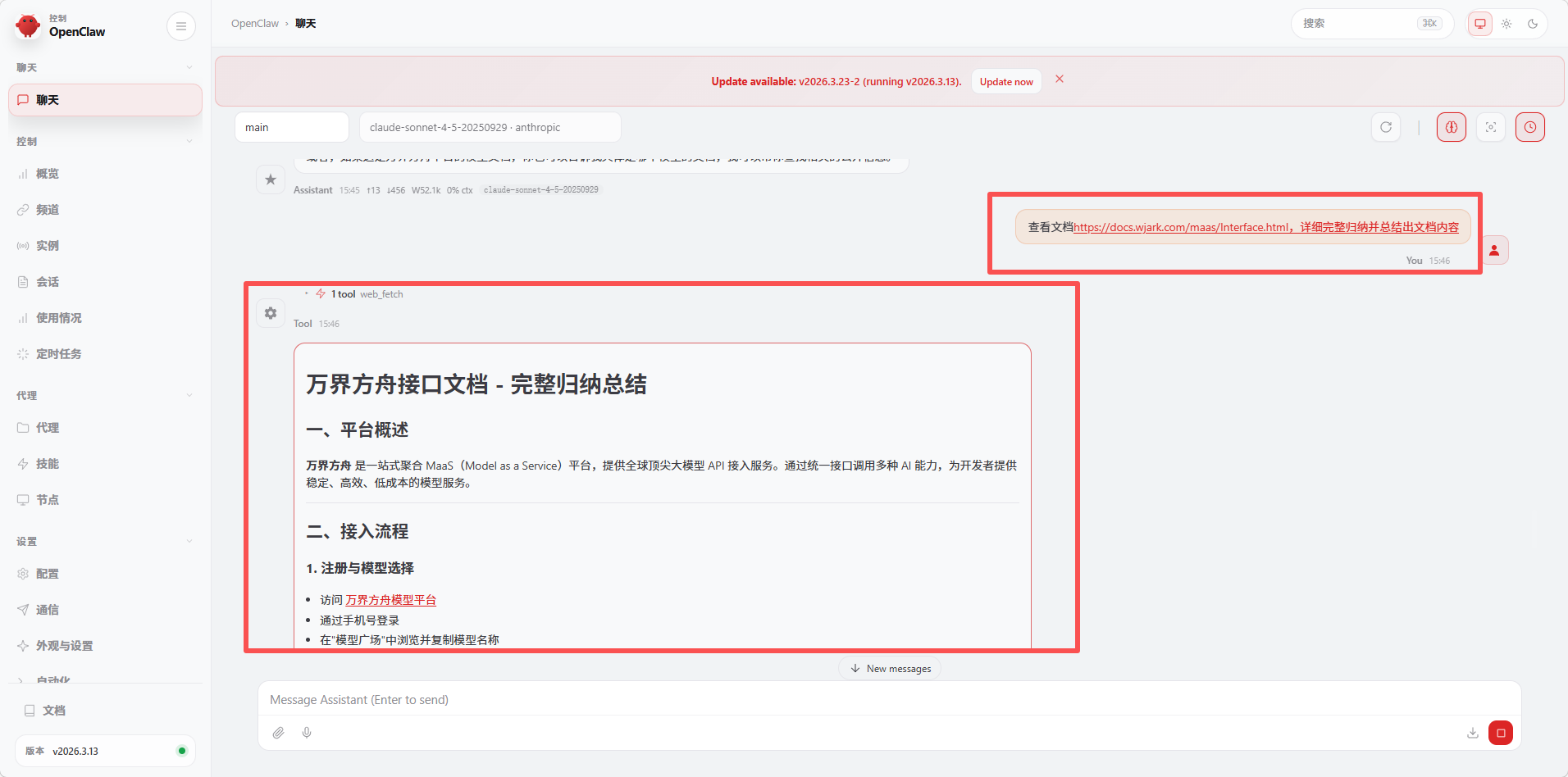 可以让 OpenClaw 进行读取文档、聊天、收集热点信息等等操作