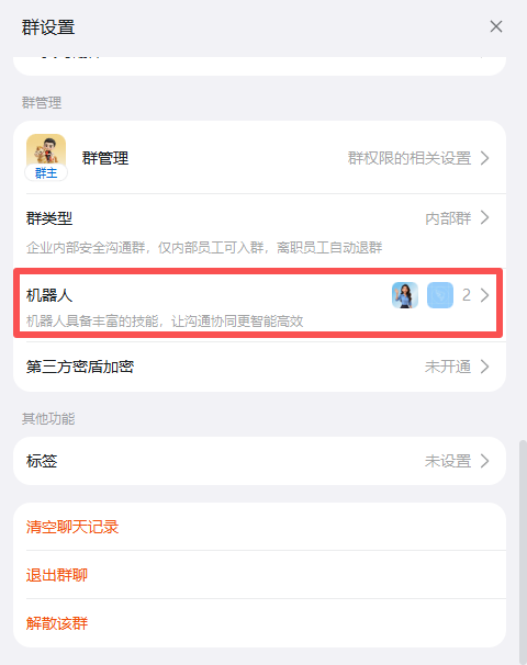 进入钉钉群,点击右上角设置,在设置页面中找到机器人,点击添加机器人。在添加机器人的搜索文本框中输入目标机器人名称,并选中要添加的机器人。点击添加,完成后再点击完成添加。