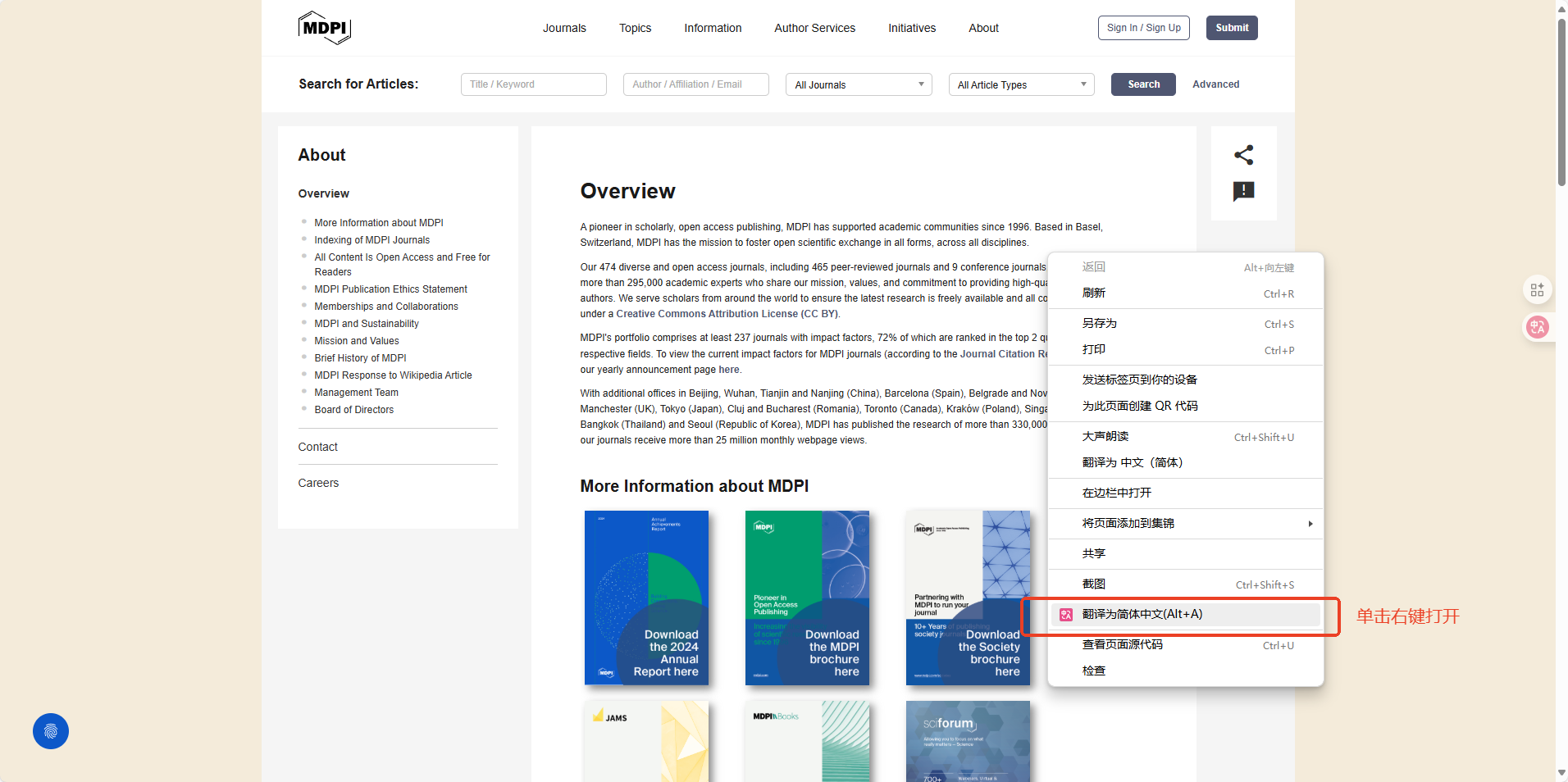 - 打开需要翻译的网页,点击沉浸式插件的翻译按钮,或者使用默认快捷键" Alt + A ",你还可以点击屏幕右侧的悬浮球进行一件翻译(默认开启),当然还可以在网页中单击右键,找到翻译按钮点击翻译。