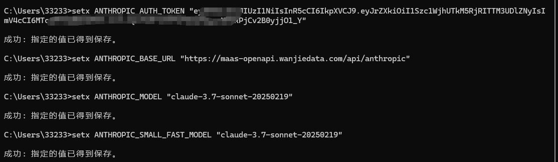 setx ANTHROPIC_BASE_URL "https://maas-openapi.wanjiedata.com/api/anthropic"