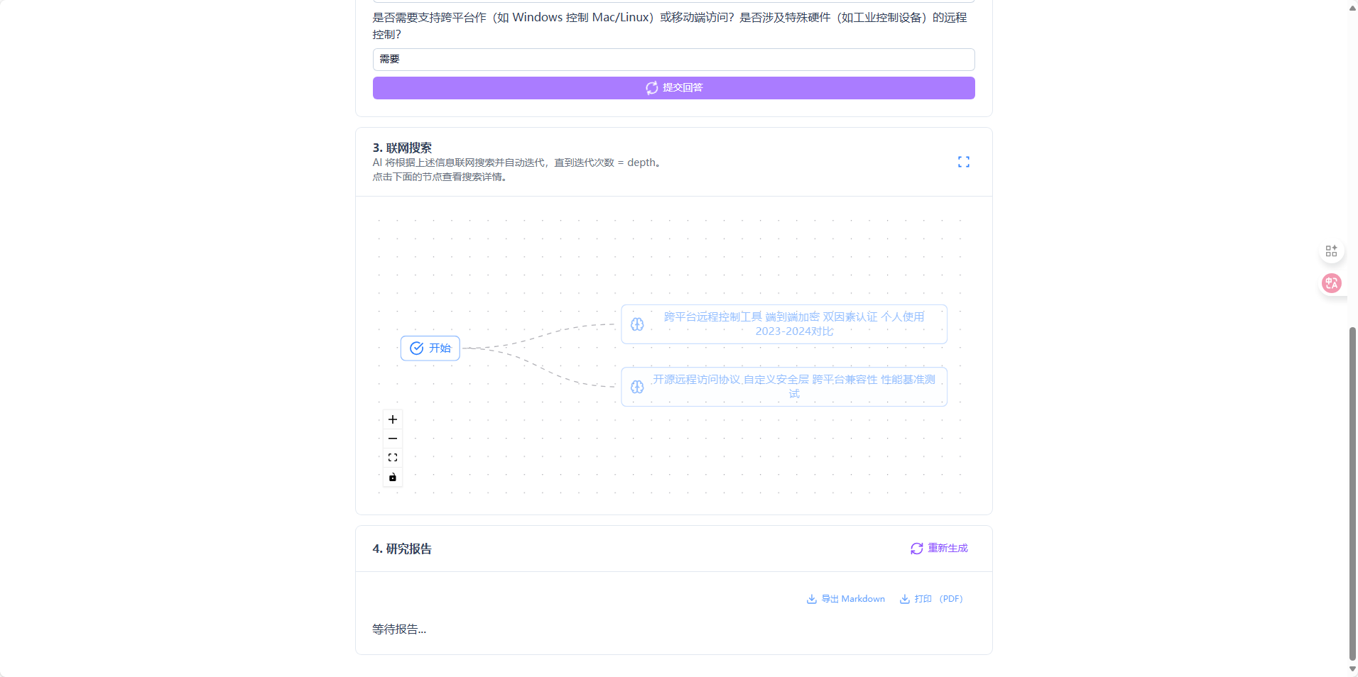 Deep Research Web UI是一款专为深度数据分析和复杂研究任务设计的交互式网络平台,通过整合多源数据、AI驱动分析工具与可视化界面,帮助研究人员快速挖掘高价值信息并实现高效知识发现。其核心优势在于将学术级算法封装为可拖拽模块,支持非编程用户构建自定义研究流水线,同时提供实时协作与动态结果溯源功能,满足跨领域团队对透明化、可复现性研究的刚性需求。